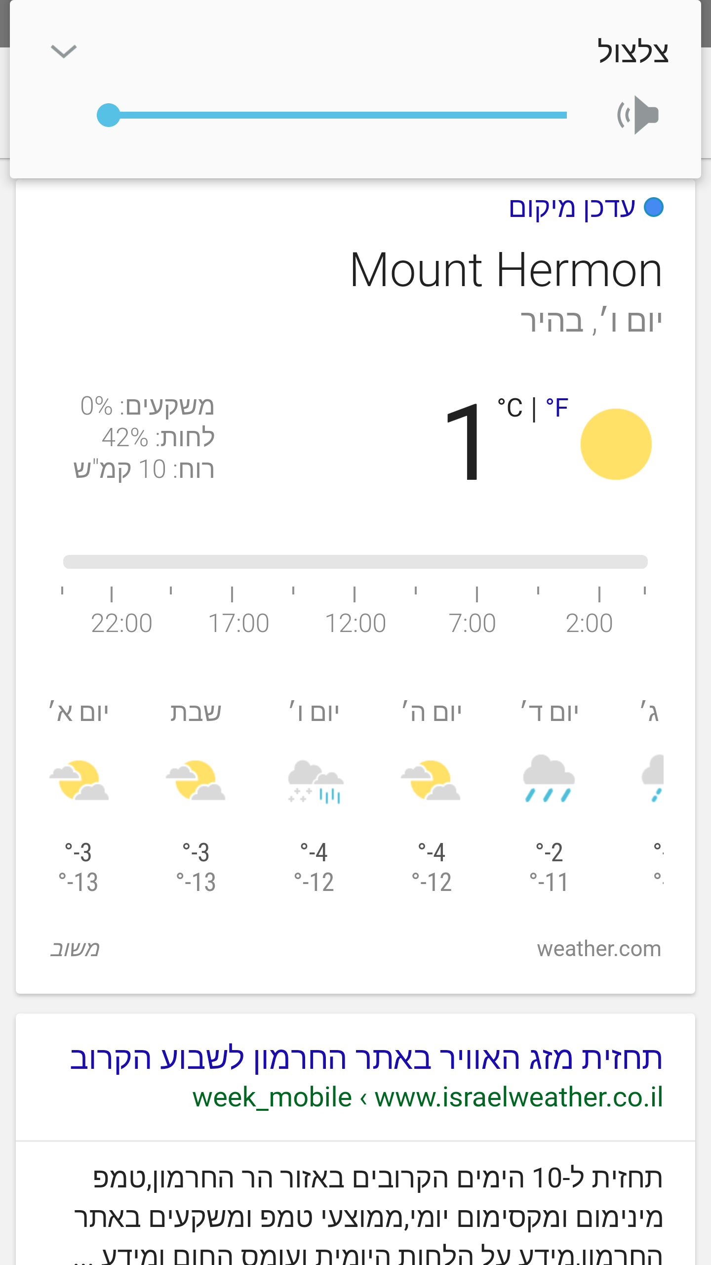 והנה התחזית להר חרמון לפי גוגל כרום פשוט מזג Weather2day